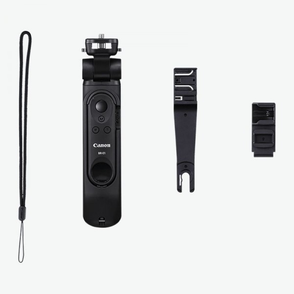 Accessoires inclus : Télécommande Canon BR-E1, Support micro amovible (2 tailles), Dragonne, Manuel utilisateur